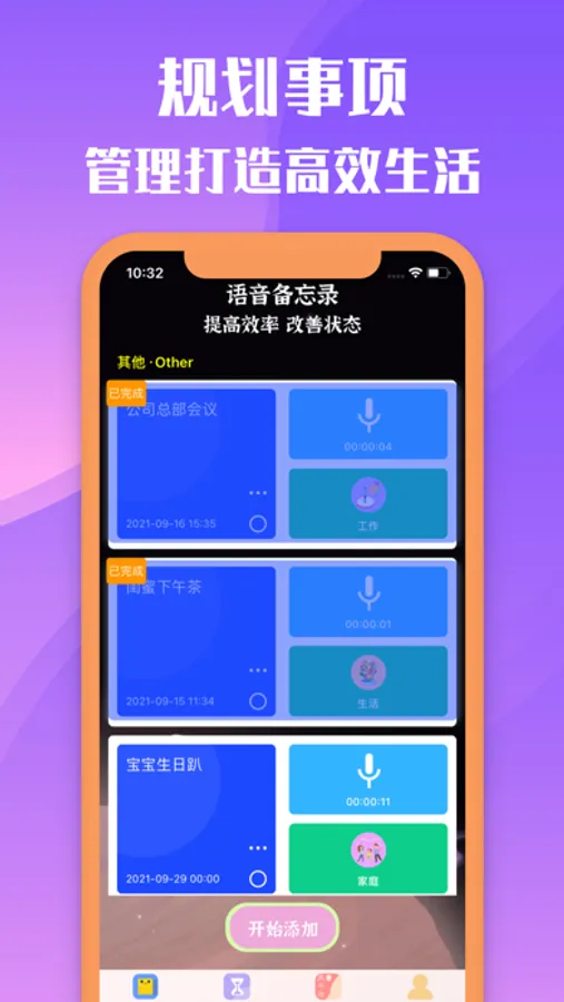 【语音备忘录】分类清晰,便于归整,及时提醒,提高效率;