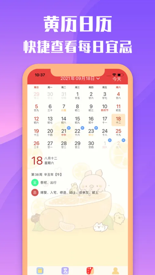 【万年历】简洁实用,周期日历,每日宜忌,每日运势,一目了然。