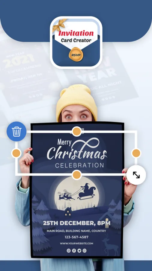 - Add own images on invitation card from gallery or camera.