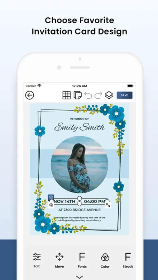 - Save & Share your Invitation Cards via social media