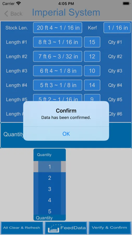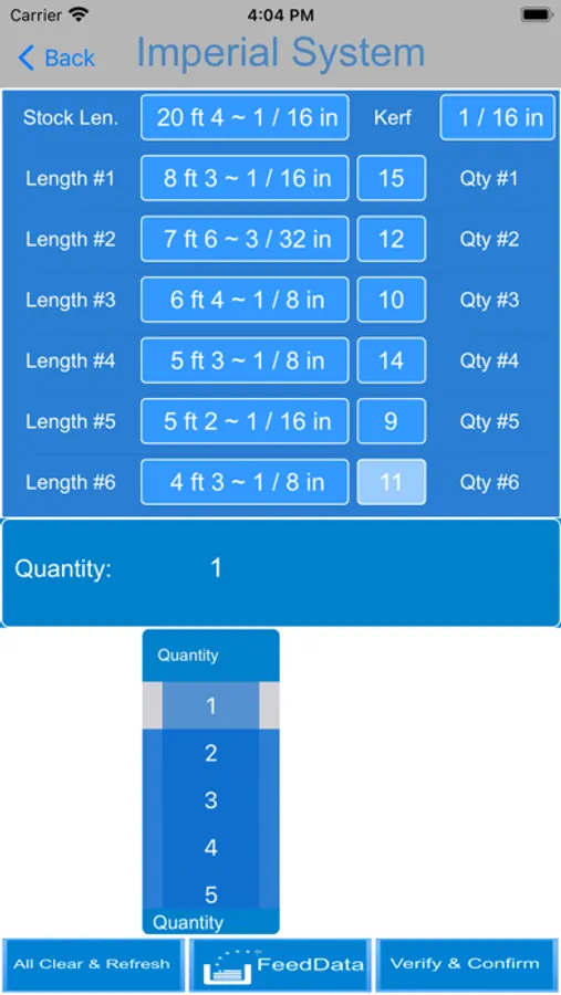 An imperial video demonstrates how to feed data for the imperial system (feet-inches and fractions) in the easiest way. It is a unique design in the mobile app so far plus there are error codes to identify your input data is correct.