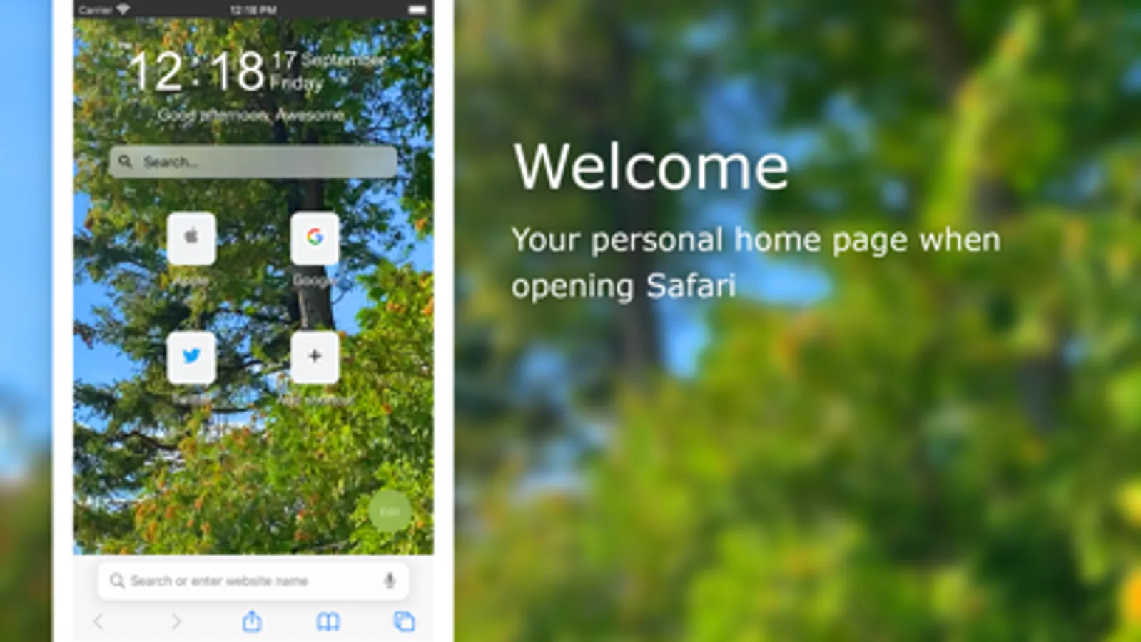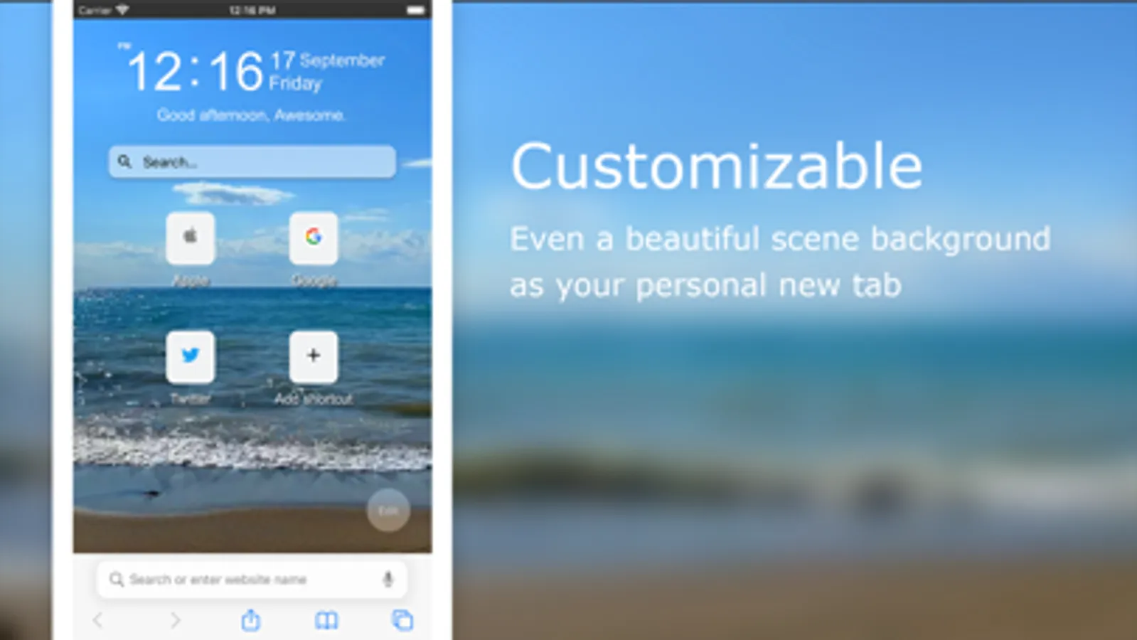 Sets your new tab page to a beautiful and inspiring background scene where you are personally greeted, depending on the time of the day. That will brighten up your day when you open your new page in your Safari web browser. The Home Tab for Safari is a simple and nice dashboard. It shows you the option to see the current time and date, greeting, search box, and speed dial of shortcuts. Furthermore, you can even toggle everything off so Safari opens a dark blank page. You can be defining your authentic personal style in your new tab. And make it the place to be… home sweet home.