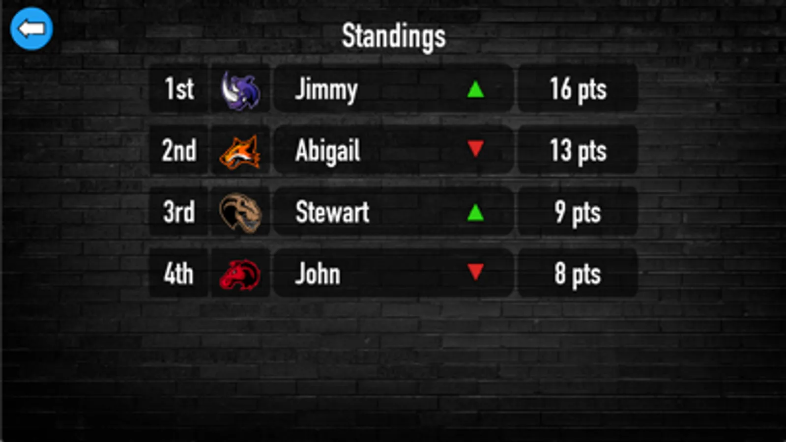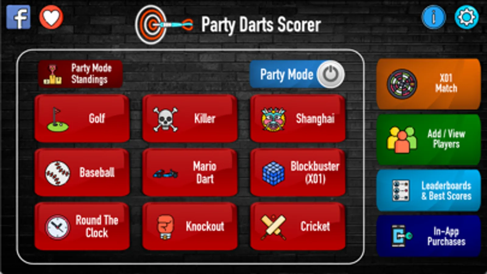 If Party Mode is turned on, after each Party game points are allocated to each player based on where they finished. A leaderboard is then stored so you can play loads of games and keep a running score. Who's going to be your Darts Night Champion!