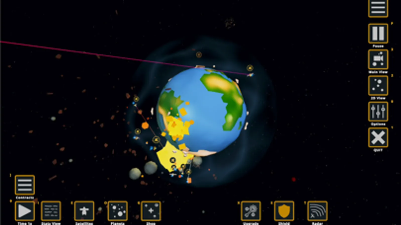 In addition to satellites, the game features a Shield that protects the Earth when enabled, but has a limited supply of energy. Use the Upgrade Panel to improve it, expanding its storage and recharging abilities. The Shield and Upgrade Panel will be essential in reaching a high score.