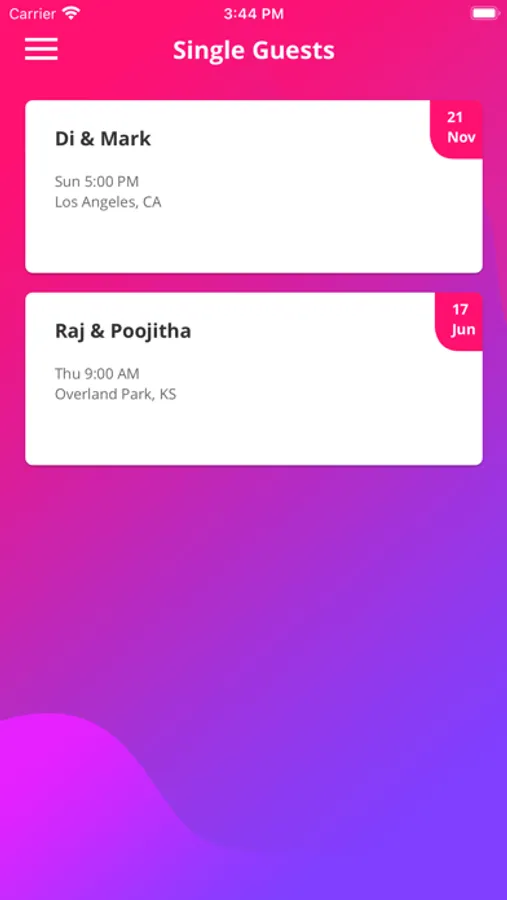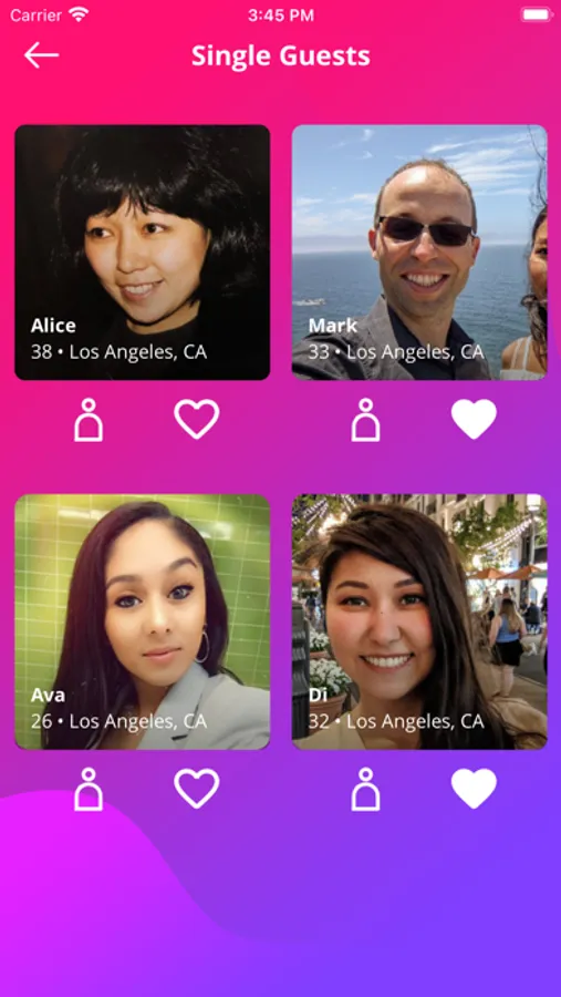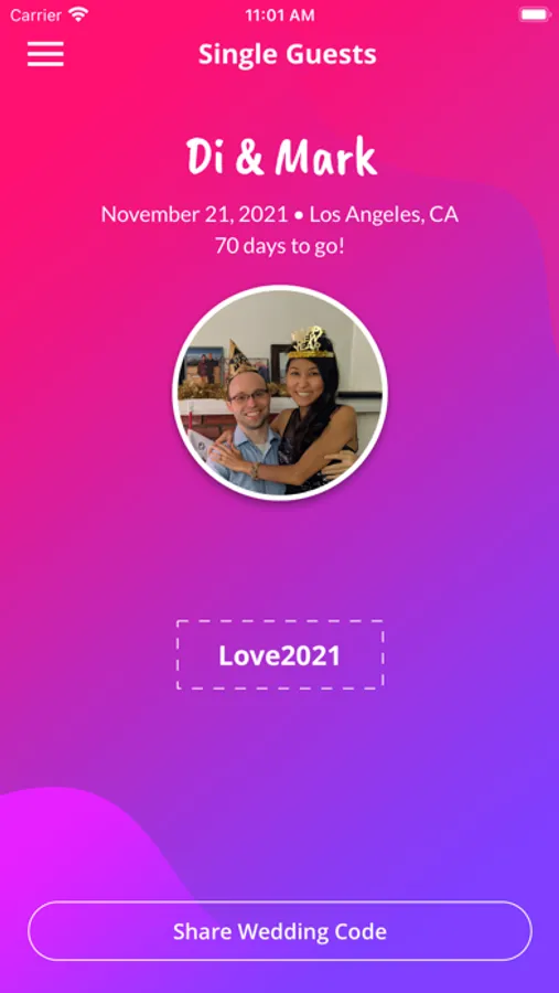 The wedding couple can share the code with all their guests. Those guests who are single can register on the app, create their profile, see other singles’ profiles and like them! If likes are mutual, the 2 guests will be notified ;)