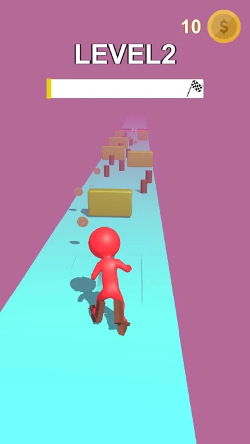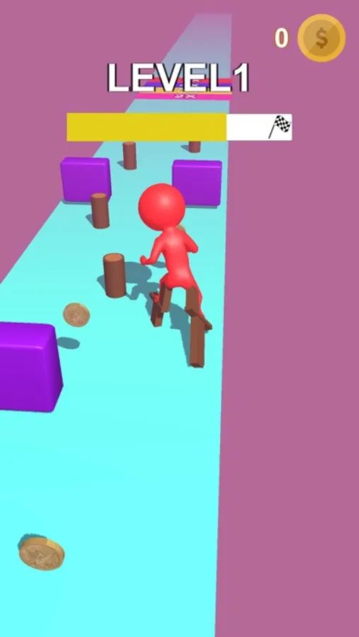 这是一个踩高跷闯关游戏,收集木头,腿就会边长,