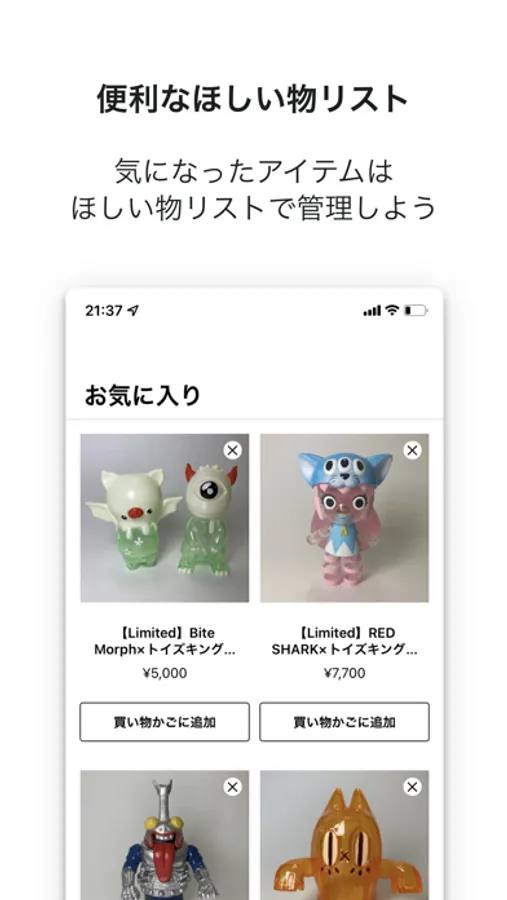 ソフビも限定品以外にもマニアックなソフビも多数あり。Tシャツやマスクといったここでしか手に入らないものもあります。 一般のフィギュアなどの予約や販売もしております。流通ではすでに売り切れたものも在庫があるときもあるので要チェック! また、お得な情報も発信していくのでソフビ・おもちゃ好きな方は今すぐアプリをダウンロード!