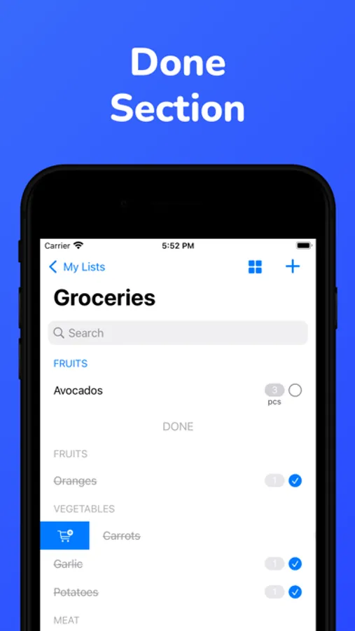 - Special sections for bought and rarely need items