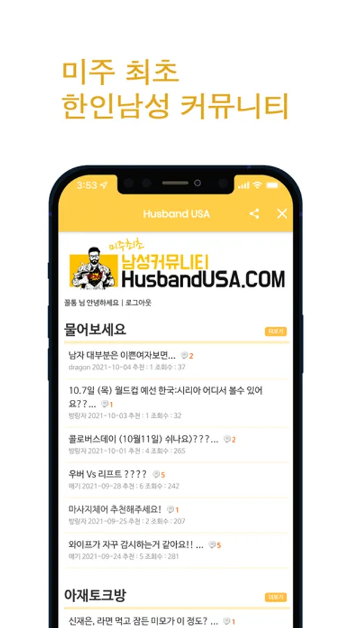 미국에 거주하는 한인 남성을 위한 커뮤니티 공식 앱