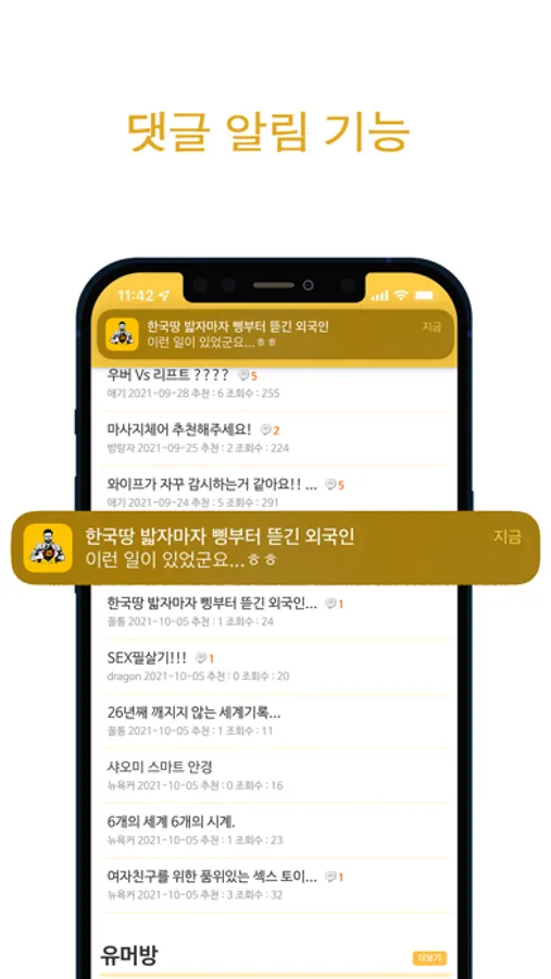 - 푸쉬알림 : 글에 댓글 등록시 즉시알림