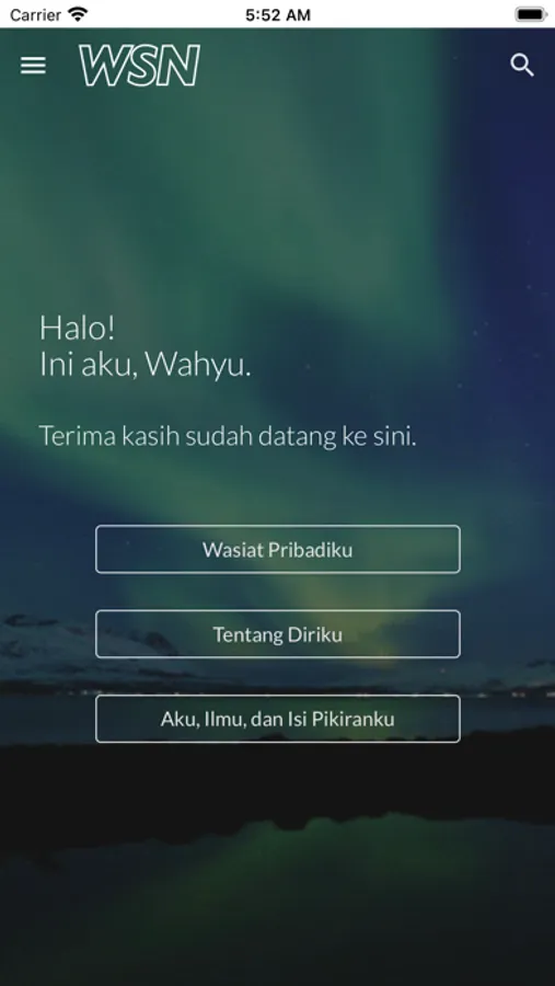 This app contains the complete life story of Wahyu Setyo Nugroho. We can find everything about Wahyu's thoughts and ideas. Wahyu writes almost everything that come from his mind and put it in this app, so we can discuss more about any topics. In short, this app is a combination of a biography and a blog.