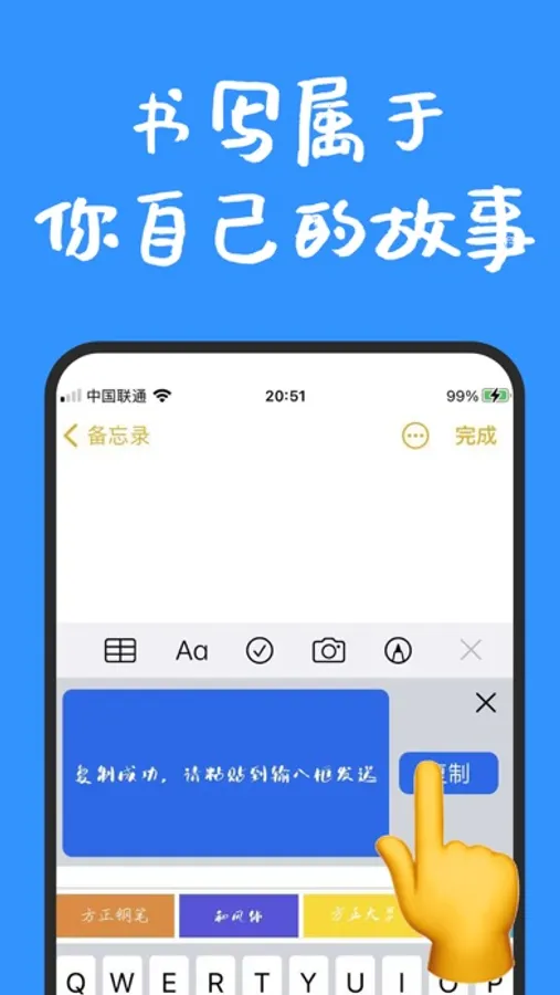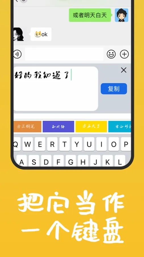 厌倦了千遍一律的字体了吗?想给好友发送不一样的文字吗?马上试试这款手写字体 APP 吧,有了它,你就能随心所欲的给好友发送各式各样的新奇字体了!赶快来尝试下吧!
