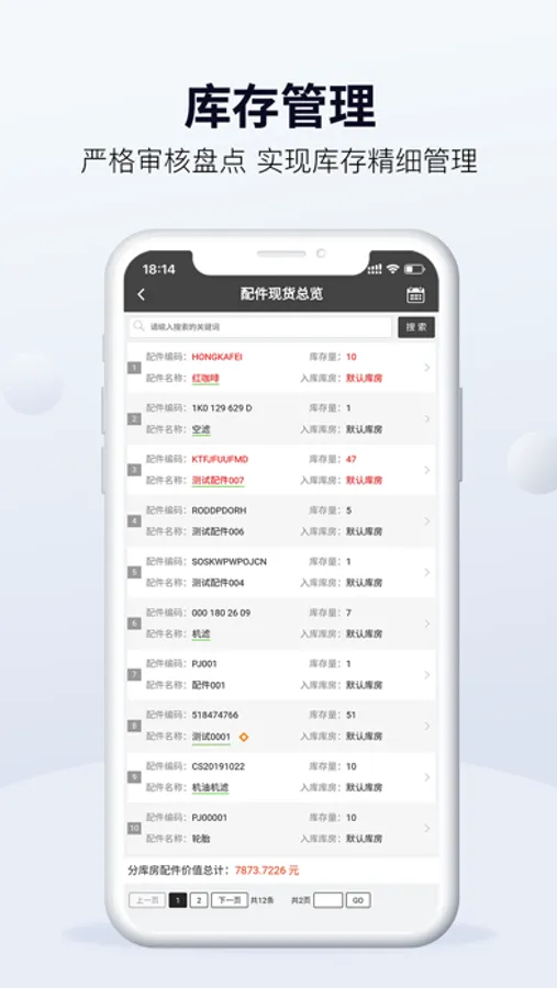 2、查看统计现有配件库存等;