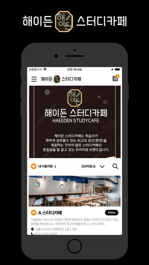 해이든스터디카페 어플리케이션은 스터디큐브에서 운영중인