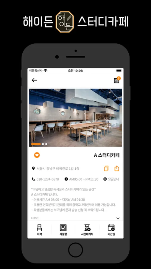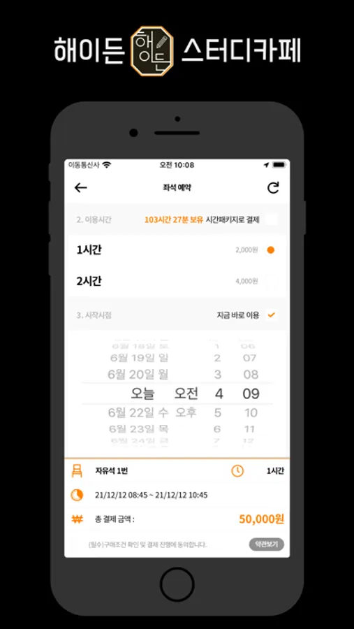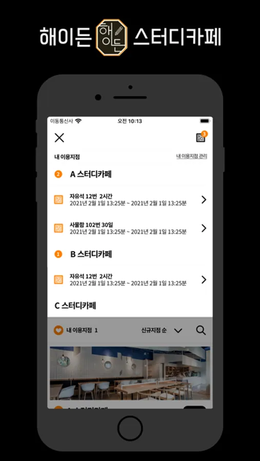 해이든스터디카페 어플리케이션을 통해 서비스 이용 및