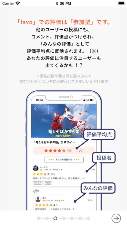3. 他のユーザーの投稿に参加しあって、みんなの評価(世の中の平均点)を作り上げていきます