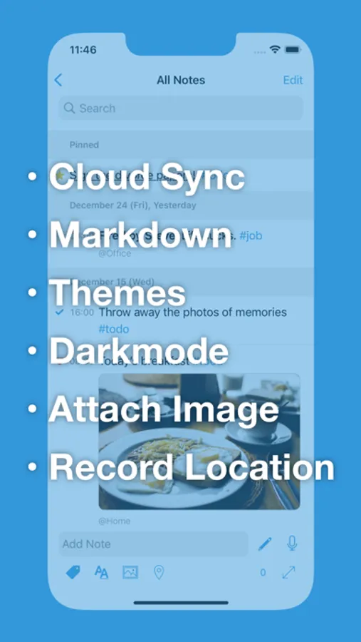 • Images can be attached to notes.