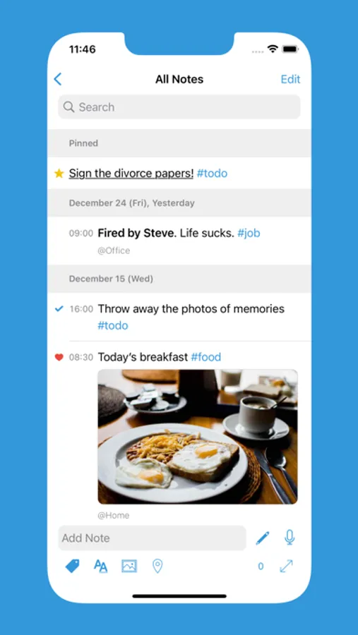 Idea note, to-do list, diary, life log, report drafting, etc. With only one app.