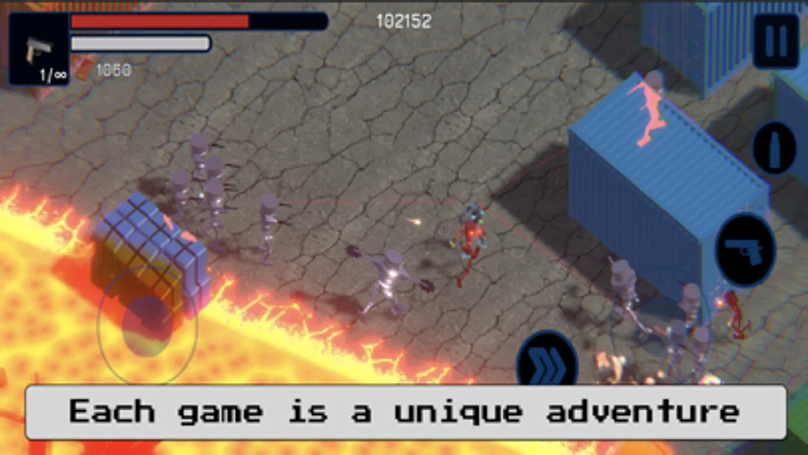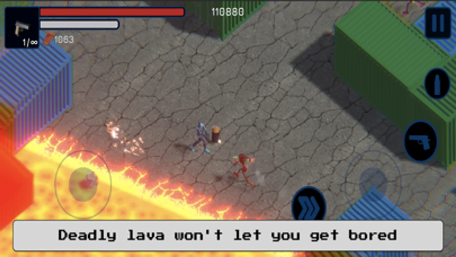 Welcome to the world where robots have won! Humanity could not be saved, but before you die, you can take with you as many new masters of the planet as possible! Defeat iron enemies with the help of a lava bomb and your arsenal. Groundhog Day awaits you, but each time you will become stronger - more weapons, more health, more stamina.