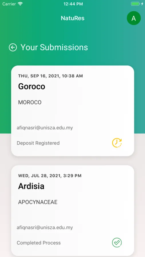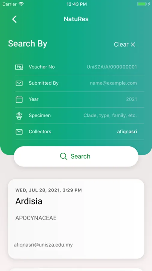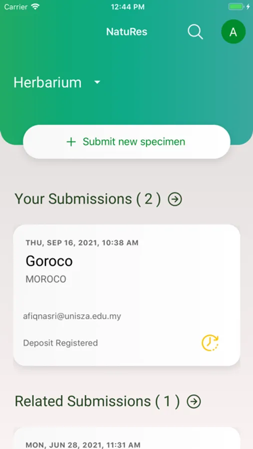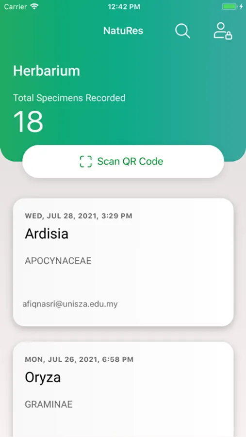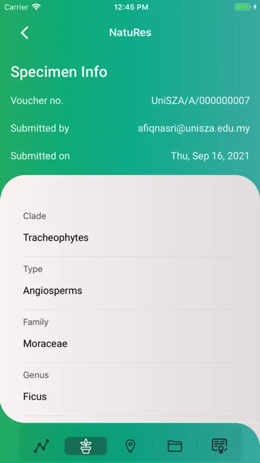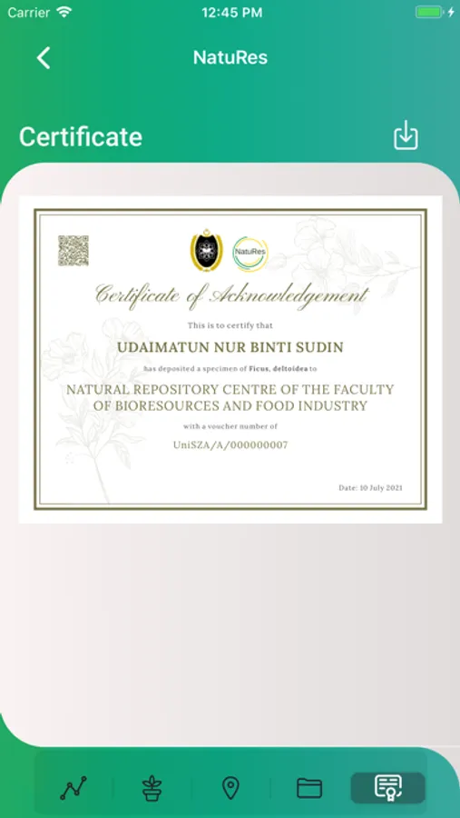 A Natural Resources Repository App initially developed for UniSZA's Herbarium. NatuRes enable users to register their specimen with UniSZA's Herbarium, monitor their submission progress, retrieve the specimen's voucher number and certificate. UniSZA's Herbarium team will also be able to monitor, keep track and update the specimen's progress via the app.