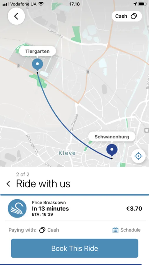 To book a ride, you need to register once in the free KleveMobil -App. There you have to enter your name, email address and mobile number. Then three steps are necessary.