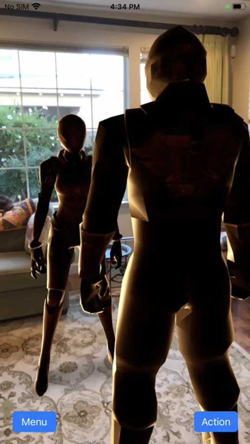 Augmented Reality Bots (ARBots) is an AR app where you can place 6 different types of AR characters (bots) around you, animate them 6 different ways, or pose them 5 different ways. You can create the bots in 5 different sizes (from table top size to giant size), and light them in 5 different ways.