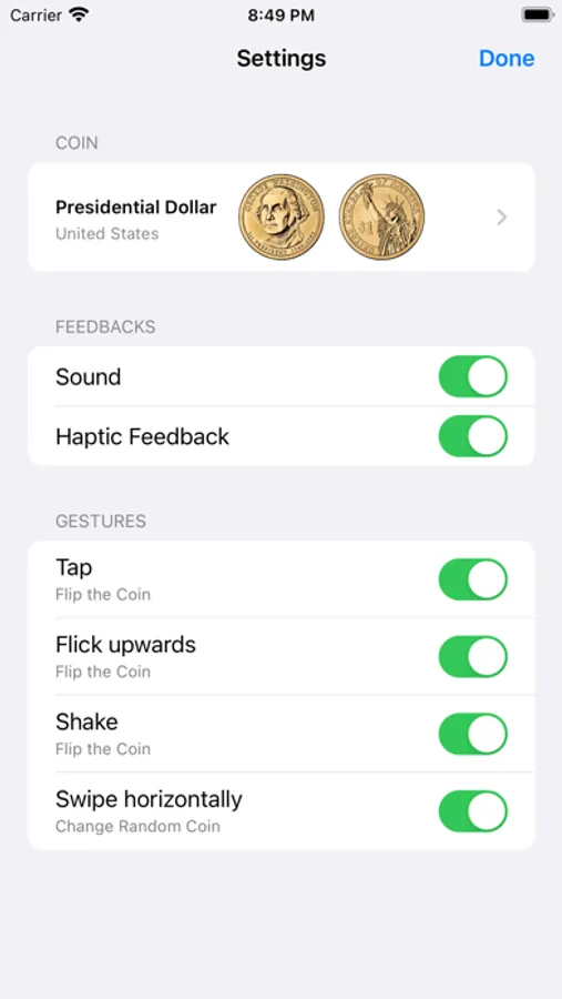 - Realistic sound effects and perfect haptic feedbacks. It just feels like you are tossing a real coin.