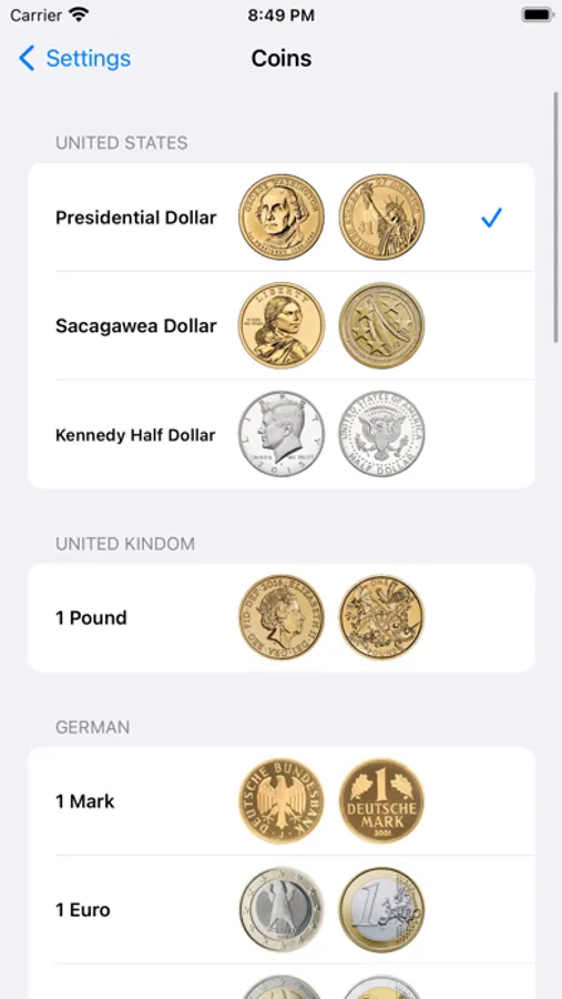 - 3D coins with HD obverses and reverses. New coins will be added constantly. You can always find your favorite one to toss.