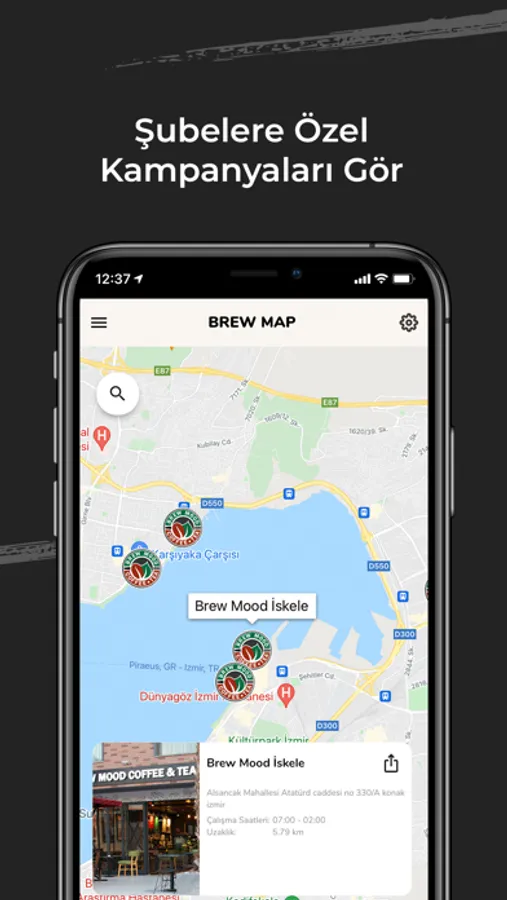 - Sana en yakın Brew Mood Coffee & Tea şubesini görebilir, şubelere özel kampanyaları inceleyebilirsiniz.