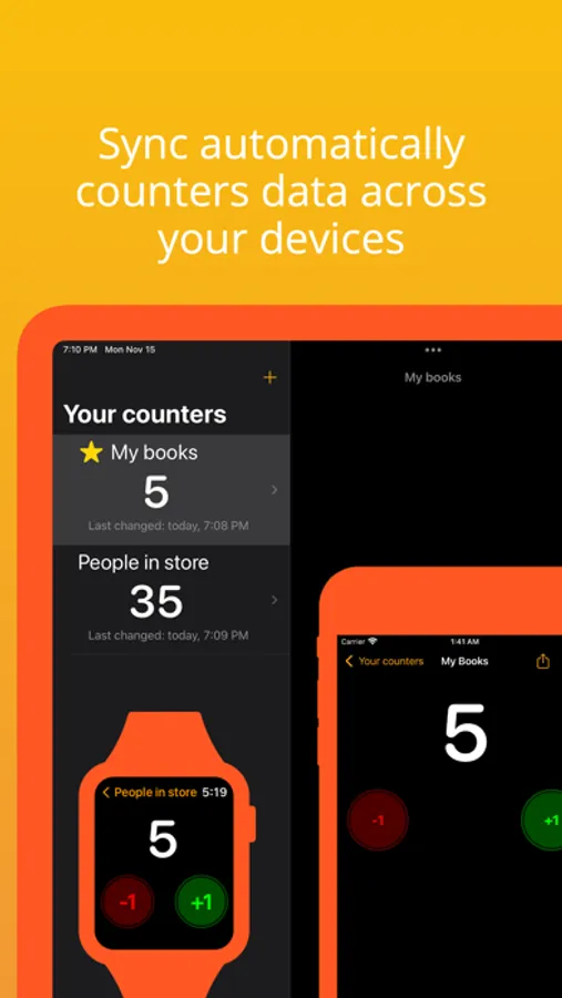 Data saves automatically and syncs wirelessly across apps installed on Apple Watch, iPad and iPhone which uses same Apple ID account. The app allows you to export data into a CSV file.