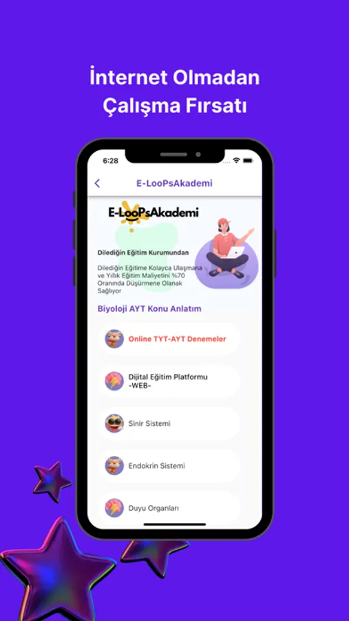 İçeride biyoloji sınavları için konular ve testler bulunmakta. TYT AYT' ye daha güçlü hazırlan.