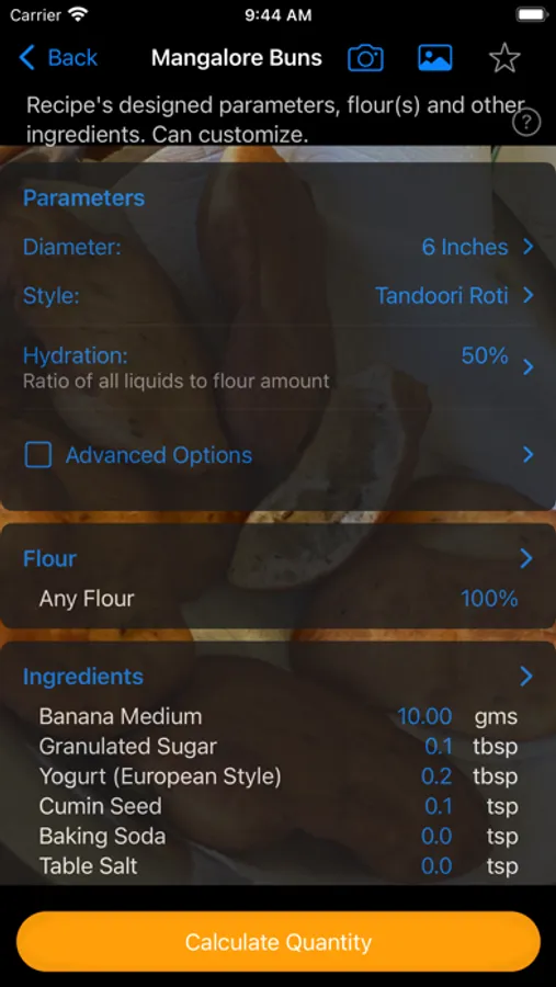 Aside from regular dough there is also a custom calculator specifically for flat breads like pizza. The app will guide you through the steps to create your perfect recipe.