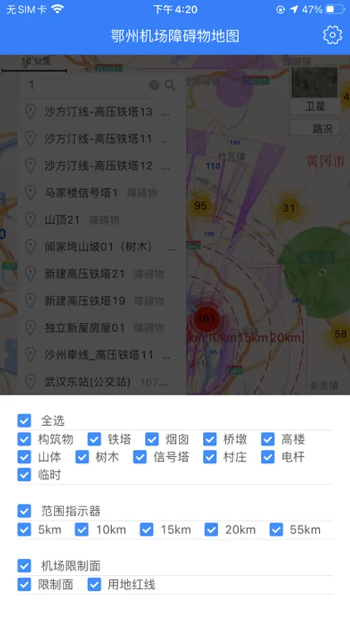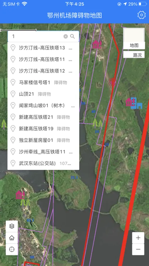 鄂州机场障碍物电子地图应用,用于工作人员添加、查看、日常维护障碍物数据,并记录自己的巡查轨迹,查看历史