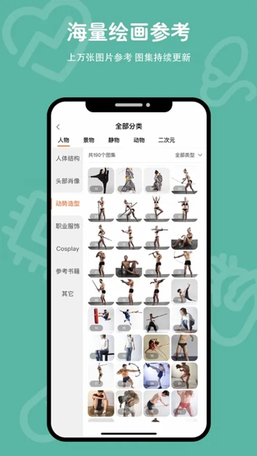 中式、日式、美式、大人、小孩、老人、青年模特参考;中国风场景、西方场景、古建筑、植物、水果静物;动物、昆虫等上万张参考资源。