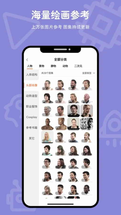 在画速写提供丰富的高质量人物、景物、静物、动物等绘画参考素材。