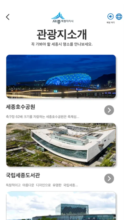 세종관광명소에는 각 장소별로 비콘이 설치되어 있어 비콘 설치 장소에 도착하면