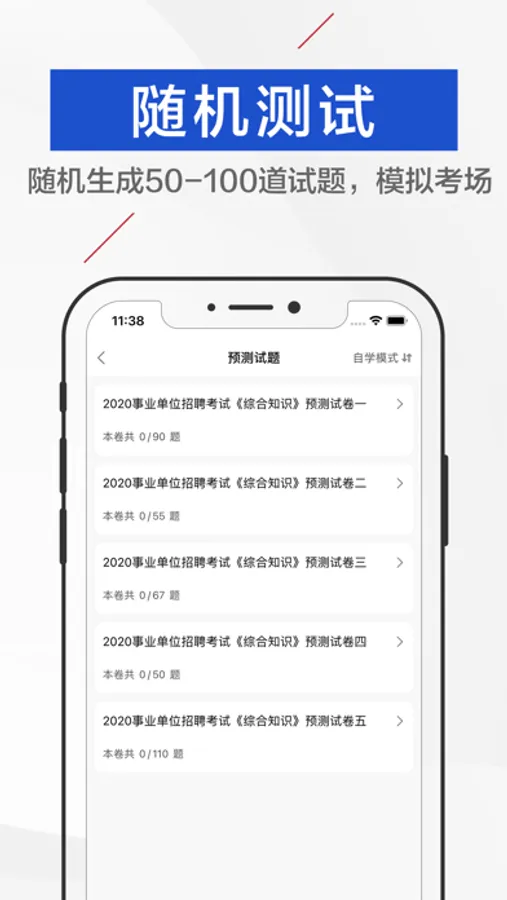 【随机测试】随机生成50-100道试题,模拟考场,检验复习效果;