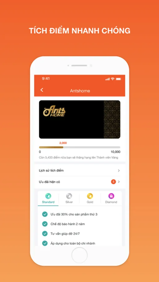 Ứng dụng Antshome hỗ trợ khách hàng với các tính năng tích điểm, nhận ưu đãi, theo dõi tin tức và đặt dịch vụ trực tuyến từ đội ngũ kỹ thuật sửa chữa chuyên nghiệp Antshome.