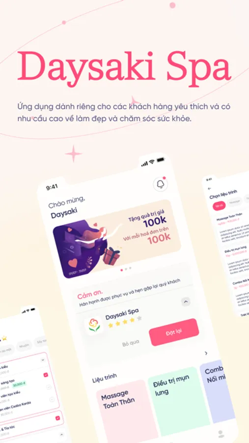 Daysaki Clinic & Spa là ứng dụng dành riêng cho các khách hàng yêu thích và có nhu cầu cao về làm đẹp và chăm sóc sức khỏe. Khách hàng có thể chủ động thời gian và tìm được chi nhánh Spa gần nhất trong tích tắc, đặt lịch làm đẹp và theo dõi liệu trình ở bất cứ đâu.