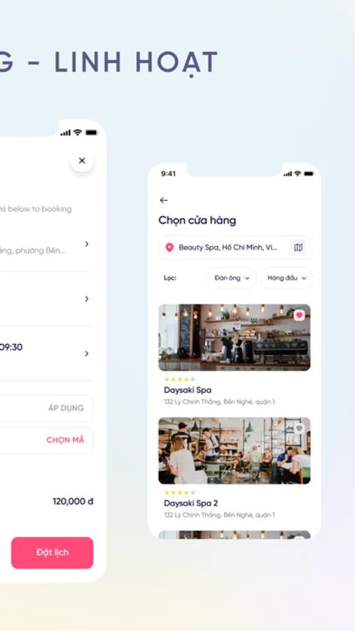 Tính năng đặt lịch trực tuyến cho phép bạn đặt lịch hẹn bất cứ lúc nào, sử dụng bất kỳ thiết bị nào. Chỉ với vài thao tác đơn giản trên điện thoại, thông tin của bạn sẽ được gửi đến chi nhánh Spa gần nhất và xác nhận với bạn qua điện thoại.