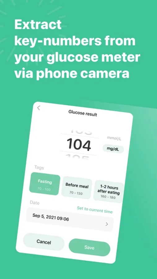 - Quick scan your blood glucose results into numbers and record them automatically.