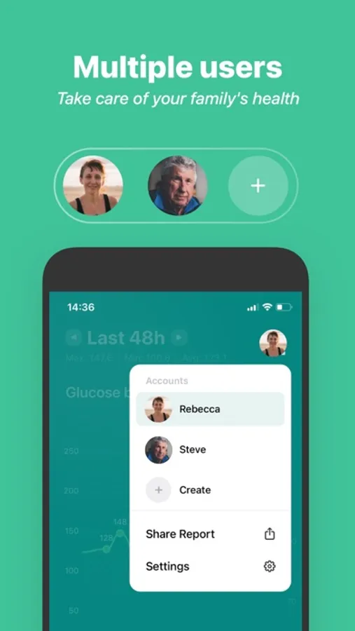 - Use and set different Blood glucose level units - mg/DL or mmol/L