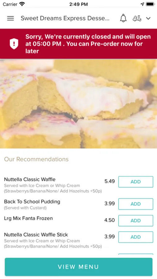 You can now order online, all your favourite desserts and many more delicious options, and have them delivered straight to your door in no time at all. Thank you for visiting. We hope you enjoy our online ordering app and your food.