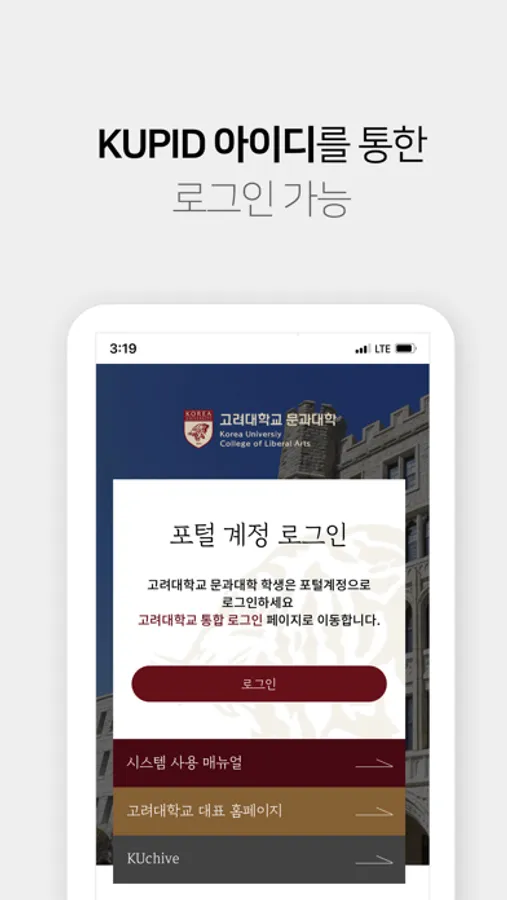 고려대학교 지식기반 포털시스템 아이디로 로그인하여 이용할 수 있습니다.