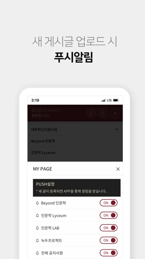 새 게시글이 올라올 경우 푸시 알람으로 확인 가능합니다.
