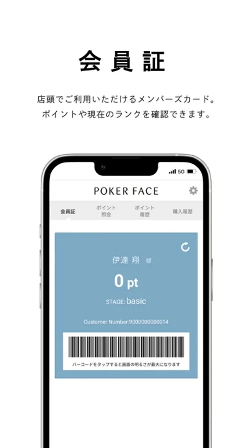 「ポーカーフェイスメンバーズ」アプリは、ポーカーフェイスの店舗にて会員証としてご利用いただけるだけでなく、