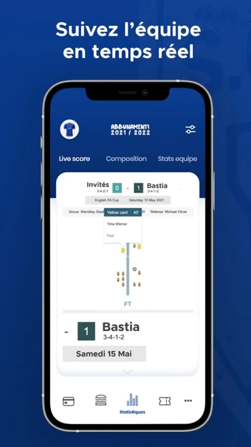 Feuille de match, stats en live, cashless, infos, catering, restez connecté H24 au plus près du Sporting Club de Bastia