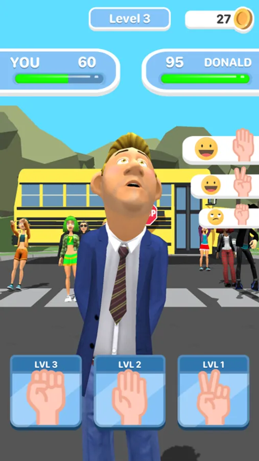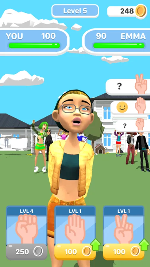 Do you think you're the best at Rock Paper Scissors? Prove it and participate to the funniest competition of all time! Try to be smartest than your opponents and give them some slaps! Upgrade your moves to be stronger and prove that you are the best of the world...if you can.