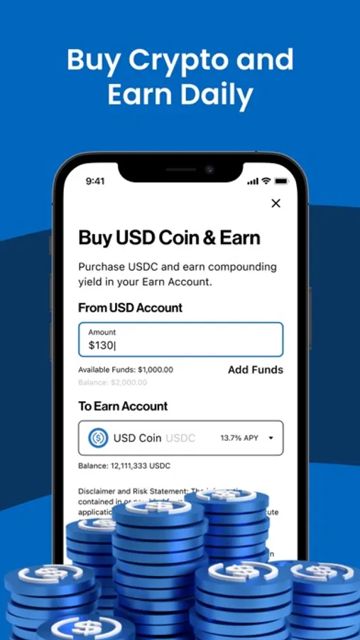 Withdraw from your Earn Account anytime, directly to USD or crypto.