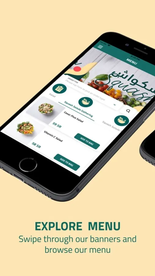 سكواش, عبارة عن محل متخصص في السلطات , يتيح لك الفرصة من بناء سلطتك الخاصة على حسب رغبتك. جميع الاصناف والمكونات التي تستخدم في تحضير السلطات طازجة من اسواق محلية وعالمية بشكل يومي واسبوعي.